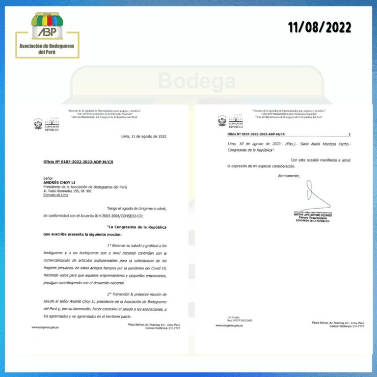 Siguen los saludos. . Gracias a las congresistas Martha Moyano y Silvia Monteza por el saludo de aniversario de la Asociación de Bodegueros del Perú y a todos nuestros bodegueros . #ABPOficial #Díadelbodeguero #AsociaciondeBodegueros #TrabajandoPorLasBodegasDelPeru #YoSoyBodegaResponsable #Unidosporunasolaasociación #AsociaciónOficialDeLasBodegasDelPerú