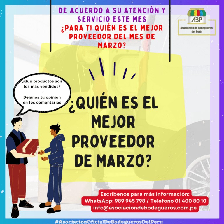 ⭐¿Quién es el mejor Proveedor de Marzo? 😎⭐ . Según tu experiencia, ayúdanos a elegir al proveedor más amable y eficaz del mes 🤩👏 . ✅ Déjanos tu comentario 😉 . ✳️ Escríbenos aquí 👇 📲 989 945 798 / (01) 4008010 👩💻info@asociaciondebodegueros.com.pe . #YoSoyBodegaResponsable #TrabajandoPorLasBodegasDelPeru #yotecuidotumecuidas #NoBajemosLaGuardia #Unidosporunasolaasociación #AsociacionOficialDeLasBodegasDelPeru
