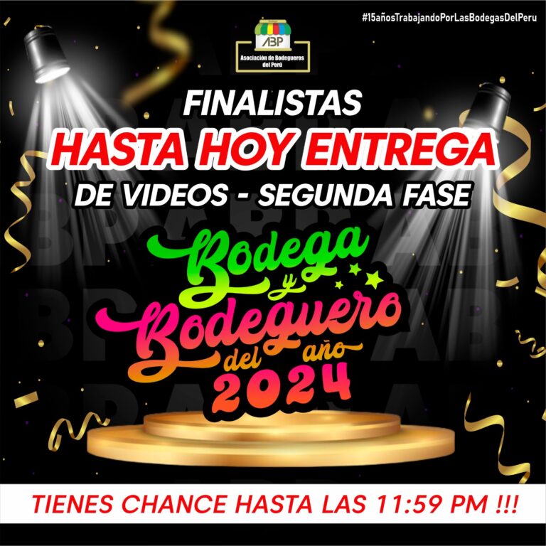 ¡HOY 16 de julio entrega de los vídeos Segunda etapa – Concurso Bodega y Bodeguero del año! Todos los finalistas deben enviar sus videos. Desde las 00:00 hasta las 11:59 p.m tienes oportunidad de entregar tu video. Enviar sus videos al correo: info@asociaciondebodegueros.com.pe O coordinadoreventos@asociaciondebodegueros.com.pe o al WhatsApp de la ABP. #BodegayBodeguerodelaño…