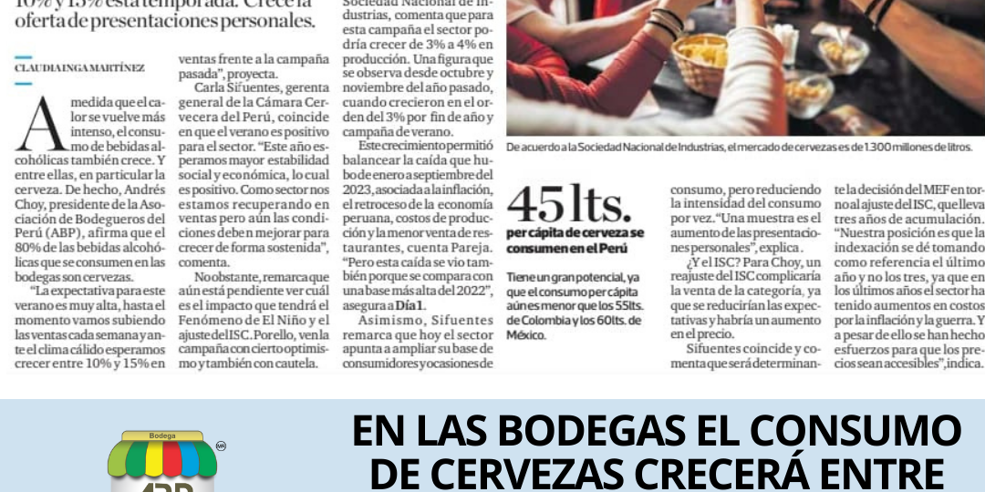 (…) En las bodegas el consumo de cervezas crecerá entre 10% y 15% está temporaDa. Crece la oferta de PresentacIones personales.