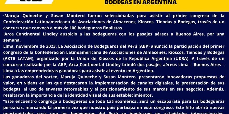 Nota de prensa de la asociación de bodegueros del Perú de las actividades realizadas en noviembre 2023.
